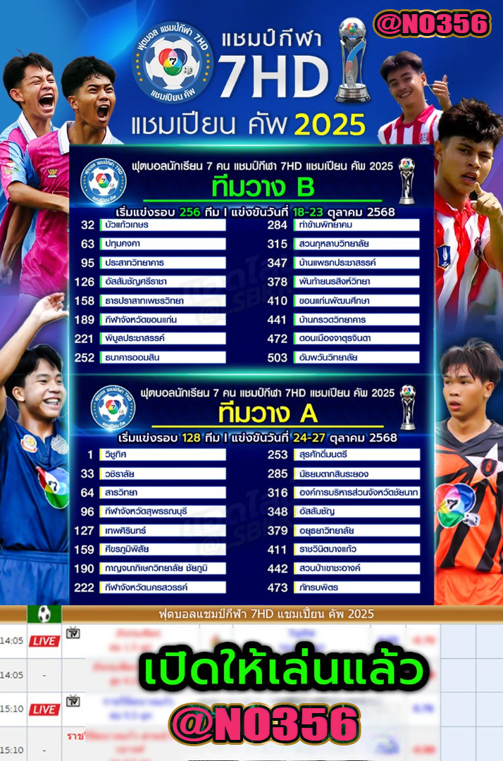 การแข่งขันฟุตบอลที่ได้รับความนิยมในประเทศไทยอย่าง แชมป์กีฬา 7HD แชมเปียน คัพ 2025 เป็นเวทีรวมทีมฟุตบอลเยาวชนจากโรงเรียนชื่อดังทั่วประเทศ ทั้งเชียร์สนุกและเหมาะกับการ แทงฟุตบอลออนไลน์ สำหรับสายลงทุนกีฬาหากมองหาเว็บมั่นคง ปลอดภัย ใช้งานง่าย และค่าน้ำคุ้มค่า แนะนำ @NO356 เว็บแทงฟุตบอลครบวงจร อันดับ 1