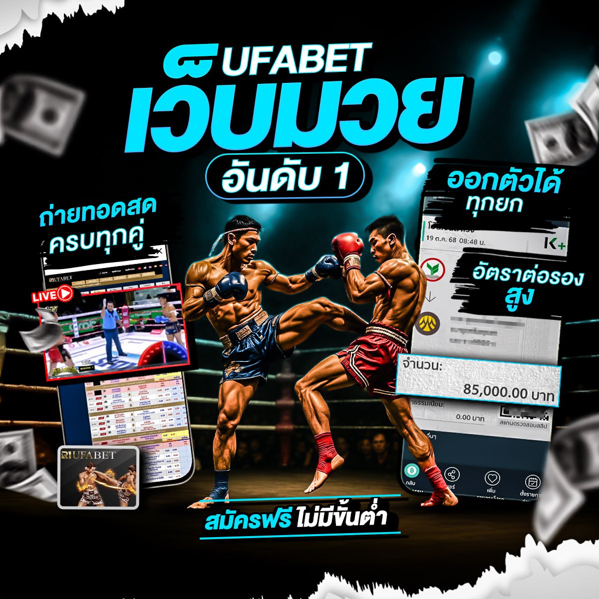 ไปจนถึงรายการระดับโลกอย่าง ONE ลุมพินี และ UFC โดยมีราคาต่อรองดีที่สุดในประเทศไทย เดิมพันเริ่มต้นแค่ 10 บาท รองรับการเดิมพันผ่านมือถือ พร้อมระบบฝาก-ถอนออโต้ผ่านธนาคาร